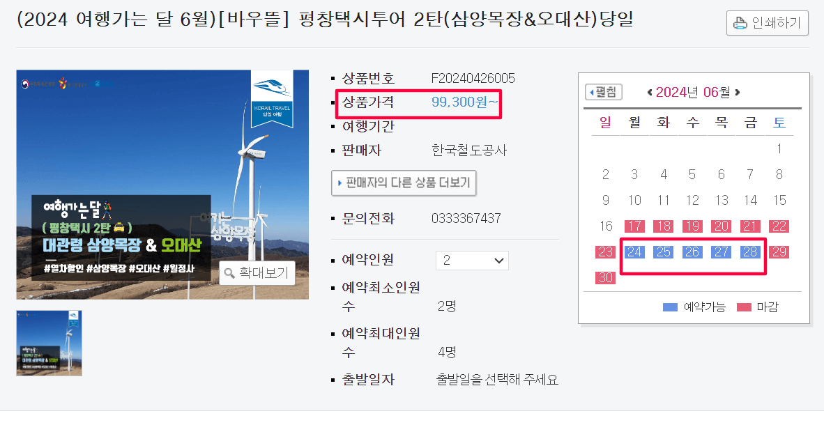 ktx를 타고 강원도를 가도 차가 없다 보니 관광지가 한계가 생기는 경험 많으셨죠? 위의 평창 택시 투어는 KTX비용 포함, 월정사, 삼양목장까지 가는 택시비까지 포함된 패키지 상품이랍니다. 2인부터 예약이 가능한데 인당 10만 원도 되지 않는 돈으로 왕복 여행이 가능하니 완전 꿀이죠?
